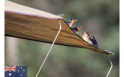Das Zelt verfügt über drei Eingänge für einen einfachen Zugang, welche jeweils auch als Sonnendach ausstellbar sind. Beide seitlichen Türen verfügen zusätzlich über je ein Fenster (2/3 Folie / 1/3 Moskitogaze), welche von außen blickdicht verschließbar sind. Doppelt abgedeckte Reißverschlüsse am Außenzelt. Bodenplane für Wohnraum einlegbar. Schlafkabine inkl. Moskitonetztür (von innen blickdicht verschließbar). Zeltlampen-Aufhängung im Dachbereich. Die komfortable Zelthöhe beträgt 175 cm.