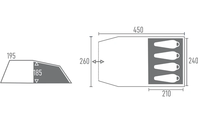 Die Schlafkabine des SUTI TC-Familienzeltes hat eine Größe von komfortablen 240 x 210 cm. In der Mitte befindet sich eine Trennwand, die Du – falls gewünscht – entfernen kannst. Durch das dunkle Innenzelt bleibt es morgens ein wenig länger dunkel als bei einem hellen Innenzelt.